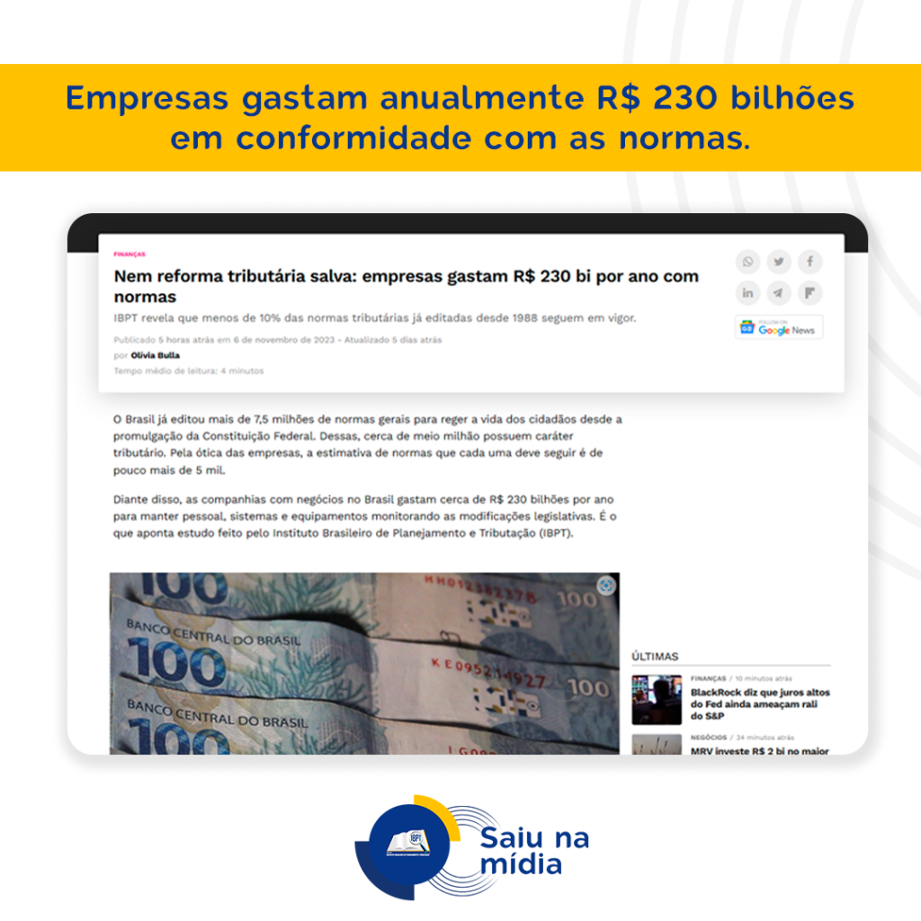 Diante disso, as companhias com negócios no Brasil gastam cerca de R$ 230 bilhões por ano para manter pessoal, sistemas e equipamentos monitorando as modificações legislativas. É o que aponta estudo feito pelo Instituto Brasileiro de Planejamento e Tributação (IBPT).