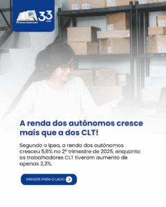De acordo com dados do Instituto de Pesquisa Econômica Aplicada (Ipea), a renda dos trabalhadores autônomos cresceu 5,6% no segundo trimestre de 2025 em relação ao mesmo período de 2024. Entre os trabalhadores informais, o aumento foi ainda maior: 6,8%.